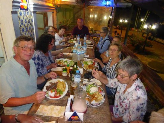 Zum Nachtessen fahren wir mit den Mototaxis zum Bulevard. Hier ist heute sehr viel los. Bei der runden Showbühne stehen die Leute in Massen und sehen sich das Spektakel an, dass zwei Schauspieler bieten. Kinder verkaufen Kaugummi, andere sind mit Handarbeiten unterwegs. Mütter tragen ihre Kinder auf dem Arm spazieren, junge Liebespaare schlendern eng umschlungen über den Platz.