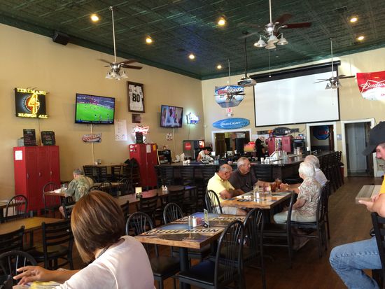 Wir treffen in Brady ein, wo ein Sport Café offen ist, nichts wie rein. Was essen wir bloss nun? Crispy Chicken Sandwich tönt gut. Wir bekommen aber zuerst irgendwas mit einer roten Sauce (Buffalo Wings), die super scharf ist. Die Kellnerin entschuldigt sich gefühlte 1 Million mal und wir bekommen 50% Reduktion weil sie das falsche Essen aus der Küche bekommen hat.