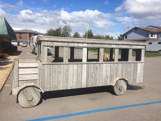 Ich bin mit Lina ca. 30min zu einem riesigen Spielplatz gelaufen, alles am See entlang, wunderschön mit kleinen Holzbrücken, dann am kleinen Hafen entlang. der Spielplatz war aus Holz und Pneus und riesig. Überall waren Geschicklichkeits Sachen eingebaut. Als wir nach drei Stunden zurück in den Camping gelaufen sind machten wir uns parat für die weiterfahrt Richtung Green Bay.