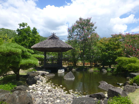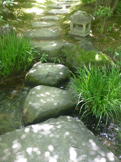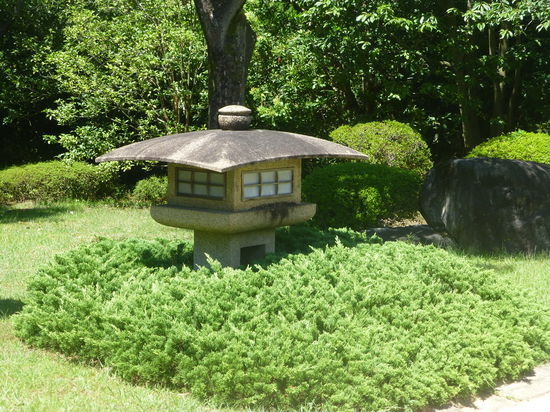 Wesentlich ruhiger ist es nur wenige Meter von der Burg Himeji entfernt im Koko-en. In diesem Garten finden sich die Nachbauten früherer Samurai-Quartiere. Neun Häuser im Edo-Stil, umgeben von verschiedenen Themengärten. Der Besuch ist sehr entspannend, aber bei zunehmender Hitze auch sehr anstrengend. Wir sind froh, immer wieder ein schattiges Plätzchen zum Ausruhen zu finden.