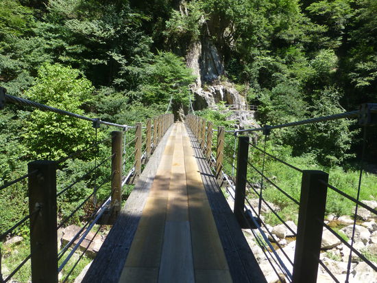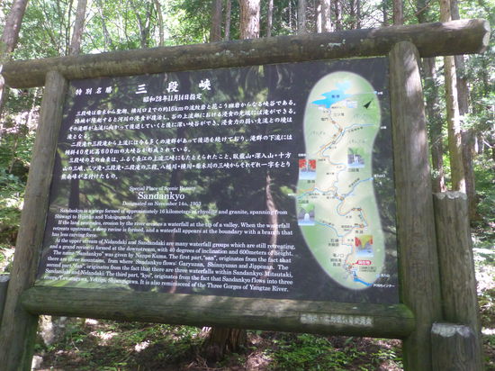 Die Schlucht Sandan-kyo gehört zum Nishi-Chugoku-Sanchi-Quasi-Nationalpark. Wir wollen den Wanderweg entlang des Flusses Shibaki-gawa in Angriff nehmen. Der Reiseführer verspricht uns Wasserfälle, Badestellen und Wälder.