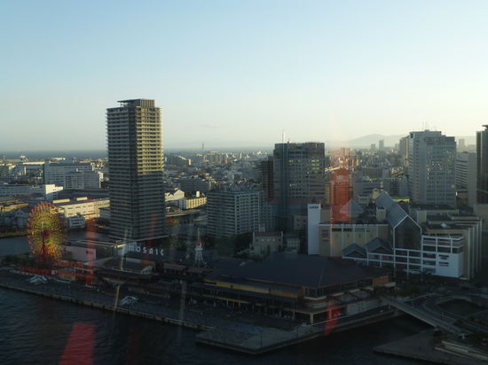 Den Sonnenuntergang wollen wir heute wieder einmal von oben genießen und fahren hinauf den den signalroten Kobe Port Tower. Oben in der kleinen Bar kann man sich an die Fenster setzen. Die Plattform dreht sich und wir können uns ganz entspannt zurück lehnen. Ein wunderschöner Ausklang des Tages bei einem Feierabend-Bierchen.
