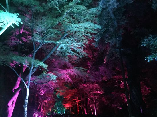 So geerdet und Tiefen entspannt fahren wir zu dem für gestern geplanten Lichterfest. Es findet an zwei Abenden im Shimogamo-Jinja Schrein statt. Wir versprechen uns eigentlich einen romantisch beleuchteten Park mit Lampions oder Ähnlichem. Leider werden wir ziemlich enttäuscht. Das Lichterspektakel beschränkt sich auf mit bunten LED-Lampen beleuchtete Bäume. Dafür schieben sich Menschenmassen über den Pfad. Wir schauen uns das Ganze ein bisschen an und kehren relativ bald zurück zum Hostel. Hier genehmigen wir uns in der Bar noch ein kleines Abendessen, dann wird gepackt. Morgen geht es über die Burg Himeji weiter nach Hiroshima.