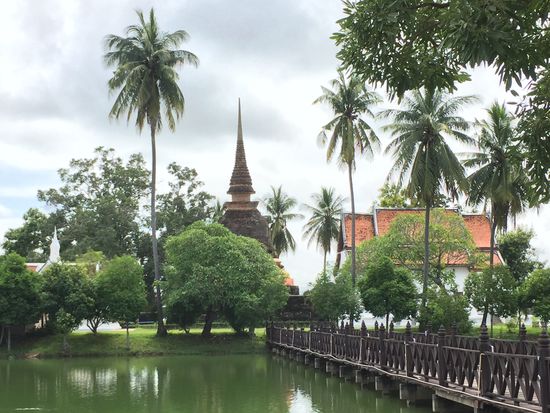 Gestern, nachdem wir verschlafen hatten und eilig nach unten eilen mussten, um noch ein Frühstück zu erhalten, mieteten wir am Eingang des Historical Park in Sukhothai drei Fahrräder, um den Park so zu erkunden. Luisa fuhr bei Ruven auf dem Sozius mit - eine lustige Angelegenheit! Es war zwar erst nach 10.00 Uhr, aber es war drückend heiss. Der Fahrtwind war eine willkommene Abkühlung. Wir kurvten im Park umher, also vor allem die Kinder, da sie die Ruinen nicht sonderlich interessierten und genossen es, dass es auch hier nicht so viele Touristen hatte (aber bedeutend mehr als in Kamphaeng Phet). In der Regenzeit hier zu reisen, hat viele Vorteile! Hier ist mehr erhalten als in Kamphaeng Phet, zum Teil ganze Buddhastatuen.