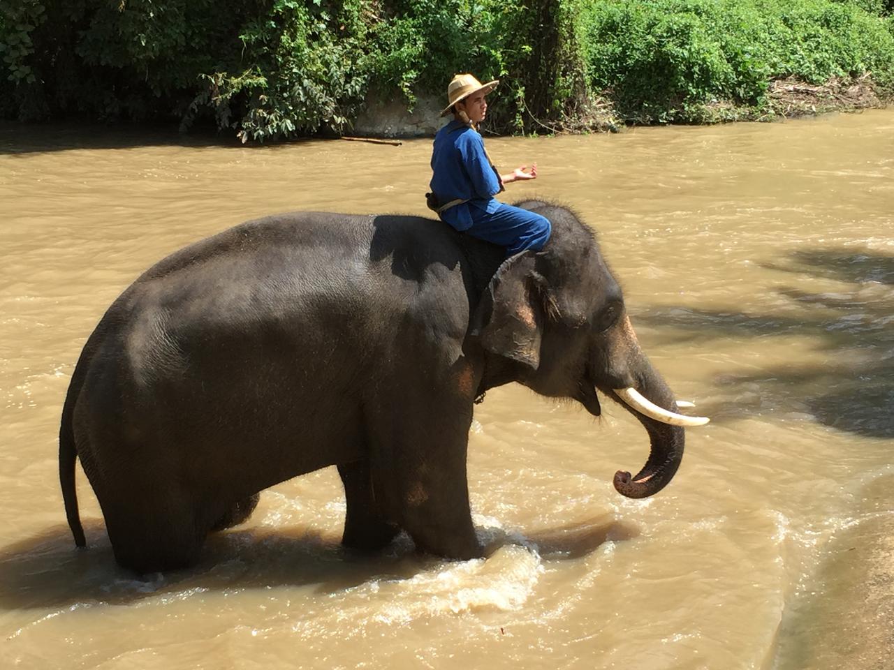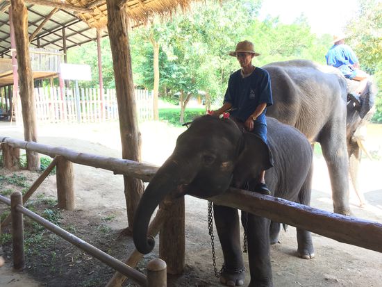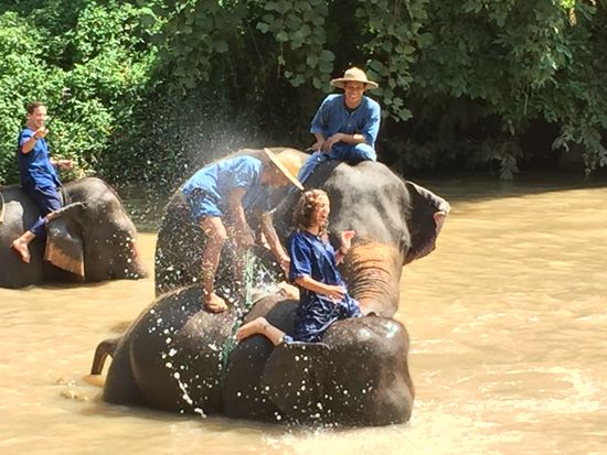 Der heutige Tag steht ganz im Zeichen des Elefanten! Wir besuchen das "Thai Elephant Conservation Center", wo wir gleich zu Beginn anlässlich der Show über diese Tiere staunen können. Man mag über diese Shows denken, was man will - die Tiere zeigen erstaunliche Fähigkeiten: Arbeiten wie Baumstämme stossen ("Gring ache u seckle!") oder ziehen und sie genau platzieren, Bälle zuwerfen, Bilder malen, sich verbeugen, runterknien, um die Mahuts aufsteigen zu lassen, abliegen und mit dem Mahut zusammen wieder aufstehen, auf einem Baumstamm gehen und wieder wenden, ohne den Halt zu verlieren etc. Bei allem haben wir den Eindruck, dass es ihnen und den Mahuts Spass macht, vor allem da es am Ende der Show für die Tiere Futter gibt.