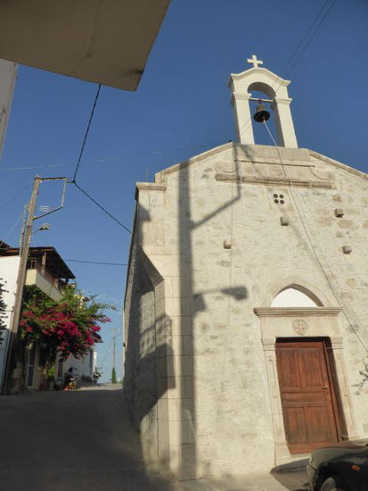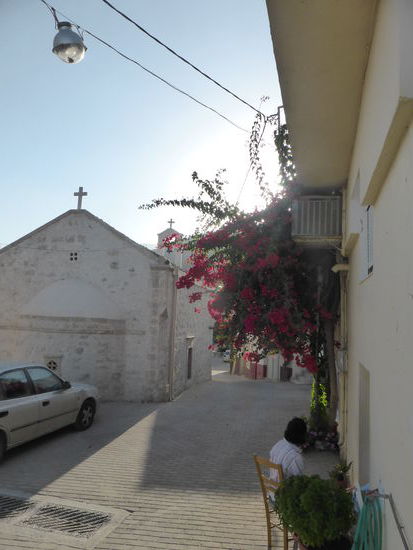 Kerasia ist ein winziges Dorf mit einer großer und einer kleinen Kirche. An der kleinen rufen wir unsere Vermieterin an und ihr Sohn ist wenige Minuten später da und zeigt uns das Dorf in der Nähe mit Supermarkt, Apotheke und zwei Restaurants. Zurück in Kerasia werden wir von Oma und Tante begrüßt.