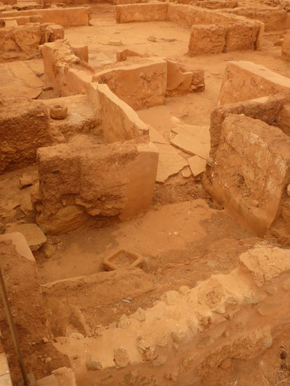 in der äußersten Südwestecke (a) des Gebäudes kann man die Grundmauern von acht kreisrunden Getreidespeichern sehen