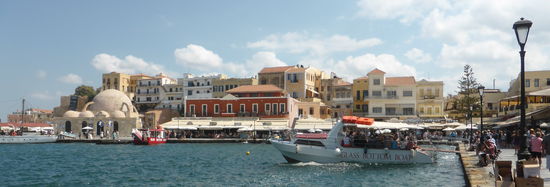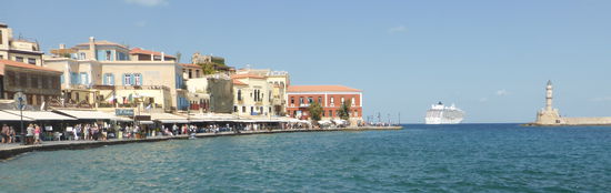 Auch wenn Chania von uns aus ganz schön weit ist, wollten wir uns diese Stadt nicht entgehen lassen. Also zwangsläufig knapp zwei Stunden über die Autobahn, die eigentlich nur eine überwiegend zweispurige kreuzungsfreie Schnellstraße ist, direktissime nach Chania. DIe doppelte durchgehende Mittelinie auf dieser Schnellstrasse scheint nur dekorativen Zwecken zu dienen - niemand hält sich daran. Auch die Geschwindigkeitsbestimmungen scheinen eher nach Verfügbarkeit einzelner Schilder vergeben zu sein, denn auch diese interessieren niemanden, obwohl immer wieder auf die Radarkontrollen hingewiesen wird und man auch solche Anlagen sieht - ob sie Attrappen sind? Immer wenn ich mich an die Begrenzung halte, werde ich zum Verkehrshindernis auf der starkbefahrenen Straße. In der Chania herrscht das Chaos. DIe Einfahrt in die Altstadt ist gesperrt, aber am Rande der Stadtmauer finde ich einen Parkplatz in einem Wohngebiet.