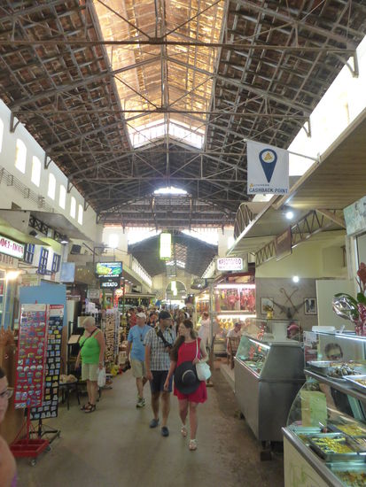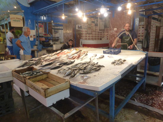 Profaner wird es dann wieder in der Markthalle, die den Marseiller Markthallen nachempfunden ist. HIer ist allerdings auch schon die touristische Mischung eingezogen, d.h. neben Fleisch und Fisch werden auch kretische Spezialitäten und auch - wir nennen es Quickquack - angeboten.