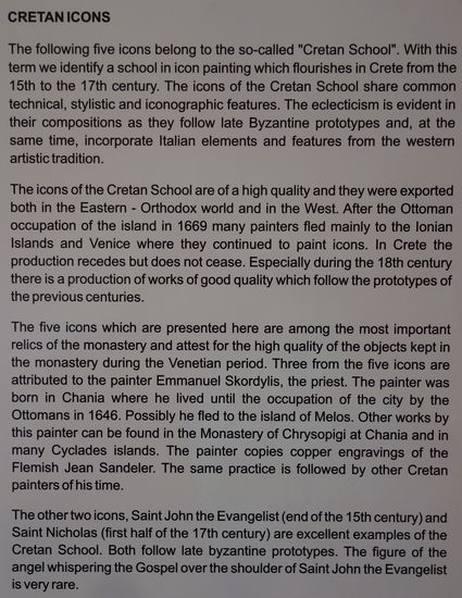 Im angeschlossenen kleinen Museum sind die 5 wertvollsten Ikonen aus dem 14. bis 17. Jh . aus dem Klosterbesitz ausgestellt. SIe sind z.T. ganz anders als man sich die üblichen Ikonen vorstellt.