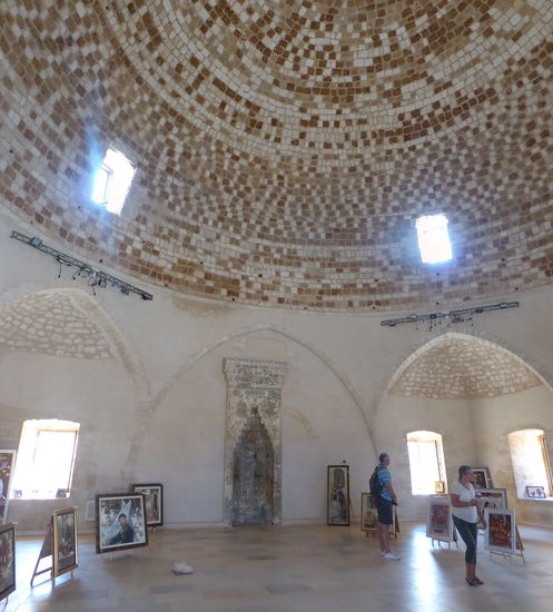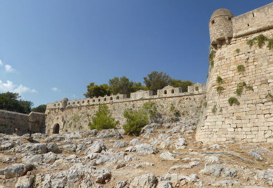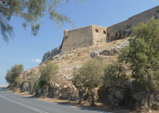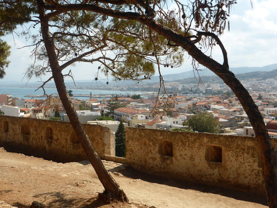 Rethymno ist die drittgrößte Stadt Kretas und ebenfalls schon zu minoischer Zeit besiedelt. Aber die eigentliche Blütezeit erlebte die Stadt während der venezianischen Herrschaft. Wichtigstes Bauwerk aus dieser Zeit ist das Fort, das auf einer Anhöhe direkt am Meer liegt. (4€) Es ist eines der größten venezianisches Anlagen überhaupt, bietet fantastische Ausblicke hat aber in Inneren kaum erhaltene Elemente außer einem langgezogenen unterirdischen Gewölbe und der restaurierten Ibrahim-Han-Moschee - war allerdings einst venezianische Kathedrale - in der heute eine Ausstellung mit Bildern von Granatäpfeln stattfindet. Dabei erfahren wir, dass bei der Hochzeit eines Paares Granatapfelkerne/ -Samen über die Erde gestreut werden, damit die Ehe lange hält. Außerdem hat man an zwei exponierten Stellen jeweils ein Open-air-Theater installiert.