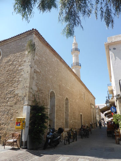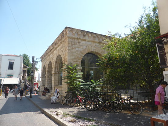 Beeindruckender ist allerdings mitten in der Innenstadt die Nératzes-Moschee mit einem Minarett aus dem 17. Jh.. DIe Türken haben auch hier wieder eine Kirche umgebaut, dabei allerdings sowohl Dach durch Kuppeln als auch Glockenturm durch Minarett ersetzt. Das Innere ist nicht zu besichtigen, da es heute eine Musikschule beherbergt und dort Konzerte aufgeführt werden.