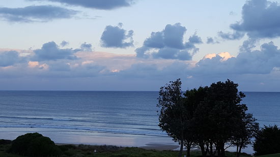 Eigentlich wollten wir noch am selben Tag bis nach Cape Otway fahren, doch da hat uns die Natur einen Strich durch die Rechnung gemacht. Als wir in Lorne angekommen sind, sahen wir ein Schild stehen, das anzeigte, dass die Strasse nach Apollo Bay gesperrt war. In der Tourist Information wurde uns erklärt, dass bei einem Unwetter ein Erdrutsch die Strasse verschüttet hätte und deswegen gesperrt worden ist. Wie lange das so bleibt konnte uns niemand sagen. Wir mussten also einen Umweg von 50 Km in kauf nehmen. Zuerst haben wir uns überlegt, ob wir in Lorne bleiben sollen, oder den Umweg heute schon hinter uns bringen wollen. Wir haben uns dann für das letztere entschieden, da es noch am frühen Nachmittag war. Die Strecke führte uns durch den Otway Nationalpark, bei schönem Wetter bestimmt ein Aufenthalt wert. Wir zogen es aber vor, diese Strecke so schnell wie möglich hinter uns zu bringen. Als wir in Apollo Bay angekommen sind war es bereits 17.00 Uhr und wir beeilten uns, einen schönen Campingplatz zu ergattern. Die Lage war ausgezeichnet. Wir sahen vom Camper aus direkt aufs mehr. Am Abend hat es kurz aufgehellt und über dem Meer war eine zauberhafte Stimmung.