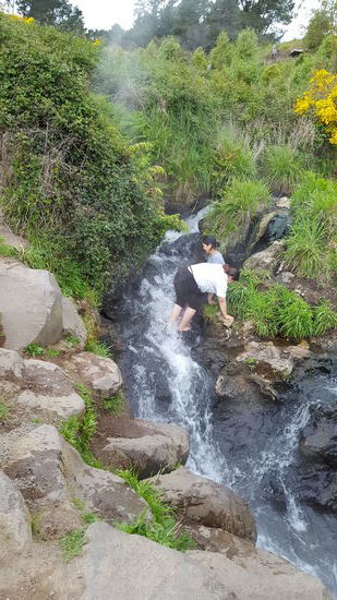 An Taupo sind wir auf dem Weg nach Napier nur vorbei gefahren. Doch jetzt nach dem Erdbeben dachten wir, ist es vielleicht doch sicherer in den Bergen. Da wir am frühen Nachmittag angekommen sind, wollten wir uns noch den Wasserfall ansehen. Wir fuhren also mit dem Womo dorthin. Den Autos auf dem Parkplatz entsprechend sollten noch zahlreiche Besucher unterwegs sein. Wir folgten dem Lärm und sahen bereits auf der nahen Brücke das tosende Gewässer. Es war gerade kurz nach 16.00 Uhr und der Fluss brachte sehr viel Wasser vom Stausee herunter. Es gab nämlich zwischen dem Kraftwerk und den Touristikern eine Vereinbarung, dass sie jeweils um 16.00 die Schleusen öffnen, damit der Wasserfall so richtig gross wird. Natürlich können wir ihn nicht mit dem Rheinfall vergleichen, aber für die Touristen ist er trotzdem eine Attraktion. Wir suchten also den Wasserfall und liefen den anderen auf einem schönen Wanderweg hinterher. Dieser schlängelte sich dem Hügel entlang, einmal sehr nah am Wasser, dann wieder hoch über einem Felsen. Nach 1 Stunde wurden wir etwas nachdenklich, als immer noch nichts von einem tosenden Wasserfall zu hören war. Bäri fasste sich ein Herz, ging auf 2 Touris zu und fragte sie nach dem Wasserfall. Es waren Franzosen, die uns bestätigen konnten, dass wir in die falsche Richtung gelaufen sind. Also so was!Das kommt davon, wenn man die Anzeigen falsch interpretiert. Wir sind dann halt zügigen Schrittes zurück gelaufen und fanden den Wasserfall nur 2 Min. von der Brücke entfernt. Wir schossen dort noch einige Fotos, dann ging oes zurück zum Auto, denn der Parkplatz wurde in kurzer Zeit geschlossen. Das Fazit, das wir aus unserem Irrtum zogen war, wir wollten ja eigentlich einen Marsch mit einem Ziel machen, also hatte es den Zweck erfüllt.