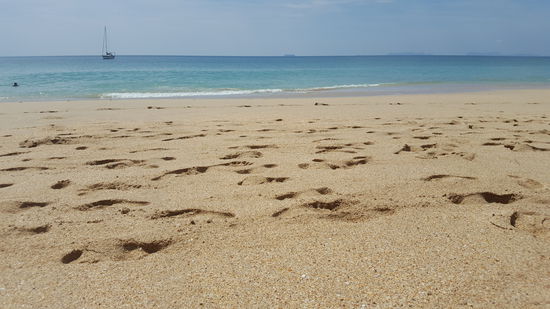 Wir lassen uns zu einem Resort am Long Beach bringen, sind mit diesem aber nicht wirklich glücklich und laufen am Strand entlang, in der Hoffnung, ein ansprechenderes Quartier zu finden. Als wir an der Anlage "Blue Sky Beach Bungalows", die direkt am Strand liegen, vorbei zur Hauptstraße möchten, erfahren wir durch Zufall, dass es noch freie Häuschen gibt und checken zunächst für eine Nacht am Prae-Ae Beach ein: wir zahlen nur 600 Baht / Nacht für einen mit einem Ventilator und einem Moskitonetz ausgestatteten Bungalow. Natürlich gibt es auch eine Dusche - diese aber nur mit "kaltem" Wasser (bei den Temperaturen hier aber eine willkommene Abwechlung). Warmduscher dürfen ihren Bedürfnissen im Haupthäuschen nachkommen oder sich in einem der ein wenig luxeriöseren Bungalows einmieten. Wir legen lediglich unsere Rucksäcke ab, schlüpfen in die Badesachen und gehen zum Strand...das Wasser hier ist wieder soooo unfassbar toll! Es ist kein Gerücht...sondern fühlt sich wirklich an wie in der Badewanne (nur mit schönerer Kulisse und deutlich mehr Leuten