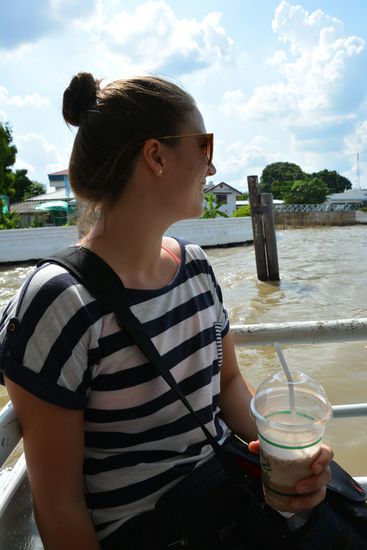 Um zum letzten Tempel für heute zu kommen, mussten wir mit dem Boot über den Fluss übersetzen. Der Tempel war anders als die beiden davor, viel schlichter und eher weiß, nicht so bunt und glitzerig wie die anderen beiden.