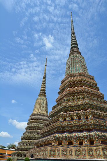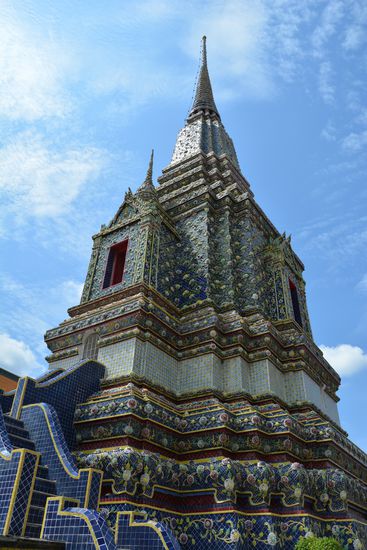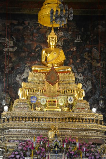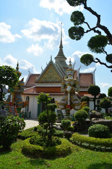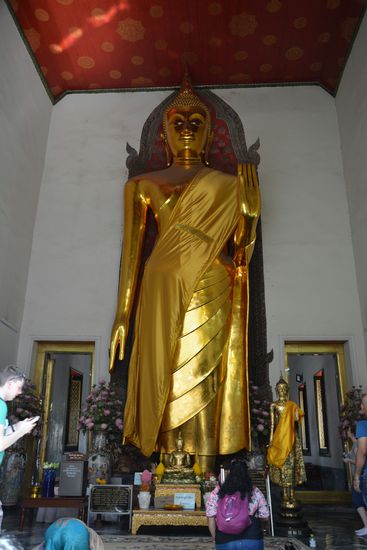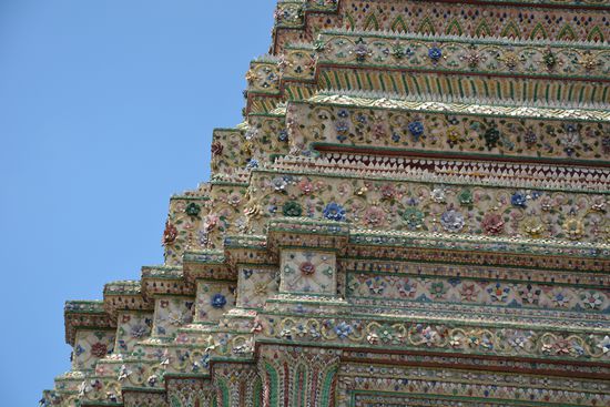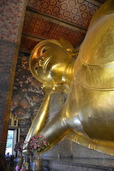 Der Tempel Wat Pho, der Tempel des liegenden Buddha, liegt unmittelbar südlich des Grand Palace. Die Hauptattraktion dort ist eine 46 Meter lange, liegende und vergoldete Buddha Statue in einem Tempel. Auch in dieser Tempelanlage war wieder alles sehr detailiert, was, wie uns jetzt klar wurde, in allen Tempelanlagen so ist