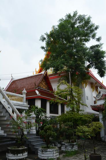 Zuerst sahen wir uns die Giant Swing an. Das ist eine 21m hohe Schaukel, die früher bei religiösen Zeremonien genutzt wurde, wegen den vielen Unfällen wurde dies allerdings eingestellt. Am gleichen Ort sahen wir uns auch noch einen brahmanischen Schrein an, jedoch nur von außen weil wir beide nicht richtig gekleidet waren (kurze Hosen).