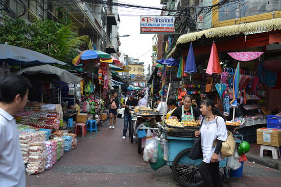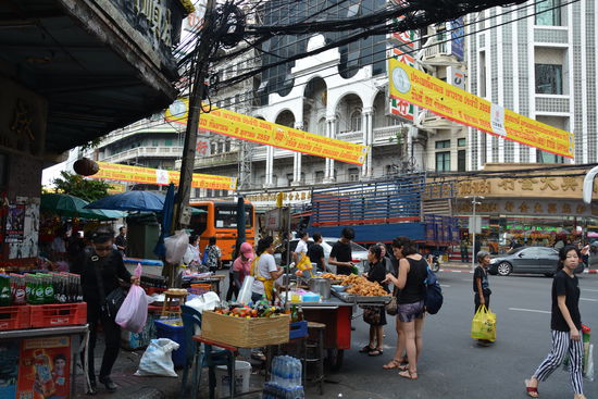 Chinatown selbst ist sehr belebt und überall gibt es Marktstände mit sehr günstigem Zeug, vor allem Schuhe und Schmuck gab es überall, aber auch die typischen Garküchen und Obststände fehlten nicht. Die Gassen waren teilweise sehr eng, die Hauptstraße dagegen recht stark befahren, sodass es abenteuerlich war, sie zu überqueren.