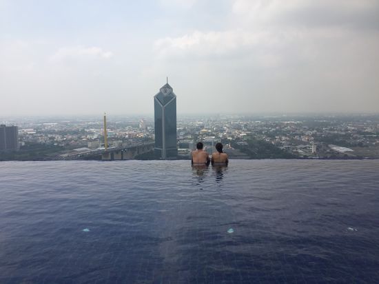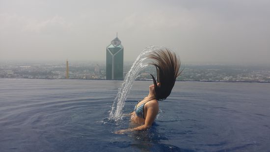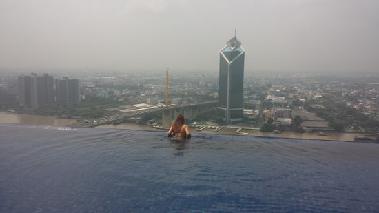 Wir waren mit Kannika Sport machen und in einem Pool im 44. Stockwerk eines Wohnhauses.