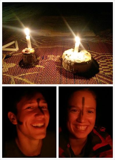 Am abend musste der Guide, der uns abgeholt hatte leider weg, um eine neue Gruppe abzuholen und wurde durch einen jüngeren abgelöst, der uns dann gleich Abendessen machte und mit dem wir uns noch eine Weile unterhielten und ein Denk- und ein Trinkspiel spielten. Für das Trinkspiel musste allerdings Wasser herhalten und später Ruß mit dem wir angemalt wurden ). Der Guide konnte sehr gut kochen (es gab Reis, gemischtes Gemüse mit Huhn, scharfes Ei und Currysuppe mit Huhn ) und es wurde ein lustiger Abend.