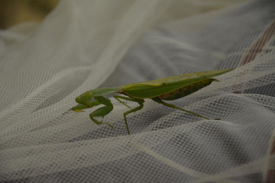 Am nächsten Morgen wurden wir von einer Gottesanbeterin begrüßt, die an der Außenseite unseres Moskitonetzes hing und ihren Platz auch nicht verlassen wollte, als wir versuchten sie abzuschütteln.