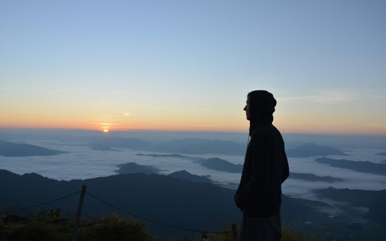 Nachdem wir alle Tuk Tuk Fahrer abgewimmelt hatten, die fragten, was wir heute machen und wo wir hinwollen, kauften wir bei einem alten Mann zwei Karten zum Phu Chi Fa. Das ist ein Berg an der Grenze zu Laos, von wo aus man einen wunderschönen Sonnenaufgang sehen kann und der, vor allem unter Thailändern, ein bekanntes Ziel ist. Um 13:00 Uhr ging es dann mit einem Van los und nach einer ca. 3 stündigen Fahrt mit einem sehr sportlichen Fahrer, kamen wir zum Glück heil auf dem Berg in einem Dorf an.