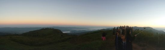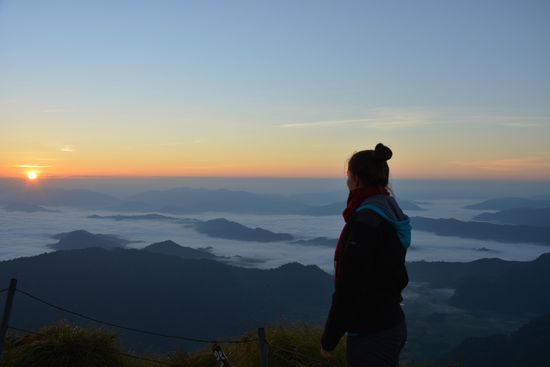 Außer uns waren noch ca. 50 andere Menschen da, jedoch nur ein anderes europäisches Pärchen, weshalb wir wieder die Nebenattraktion waren und fotografiert wurden. Erschreckend fanden wir, wie viele 5-7 jährige Kinder von ihren Eltern auf den Berg geschickt werden, um dort in Trachten zu singen, zu tanzen und Fotos mit sich machen zu lassen. Das ist allerdings nicht nur auf dem Phu Chi Fa so, sondern überall wo Touristen sind, sind auch Kinder, die für Geld Fotos mit sich machen lassen oder an Ständen arbeiten. Zurück zu unserem Zimmer sind wir dann gelaufen und haben in unseren warmen Sachen ordentlich geschwitzt, da es geich warm wird, sobald die Sonne da ist.