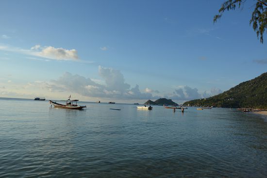 Nach einer sehr langen und nicht sehr erholsamen Nachtfahrt mit dem Bus nach Chumphon, hatten wir dort 2 Stunden Aufenthalt, bevor es um 7 Uhr morgens mit dem High Speed Catamaran nach Koh Tao ging. Die Fahrt war recht schön, aber wir sind zwischendurch immer wieder eingeschlafen...Um 9 Uhr am 13.11. kamen wir dann müde aber glücklich am Mae Haad Pier auf Koh Tao an. Wir hatten noch nichts gebucht und da wir schon wieder von lauter Taxifahrern genervt wurden, setzten wir uns erstmal ins erstbeste Café und frühstückten. Dabei schmiedeten wir Pläne. Ich wollte hier gerne meinen PADI Open Water Diver machen, damit wir dann in Australien zusammen tauchen gehen können (Mo hat den schon). Koh Tao ist bekannt fürs tauchen und es gibt hier auch einige deutschsprachige Tauchschulen. Da ich mich vorher schon mal schlau gemacht hatte, wusste ich, dass die Preise alle ungefähr gleich sind und so ging es nur noch um die Lage der Tauchschule. Wir entschieden uns zu Ban's Diving Resort zu laufen, was nur einen Kilometer entfernt am Sairee Beach lag und haben damit auch eine sehr gute Entscheidung getroffen. Zwar direkt am Hauptstrand gelegen, der jetzt nicht der schönste ist, aber dafür mit kostenlosem Zimmer während des Kurses und einem 7/11 direkt nebenan ist Ban's ein guter Ausgangspunkt. Wir wurden total freundlich empfangen und bekamen sofort ein Zimmer und auch mein Tauchkurs fing direkt abends an. So einfach geht das hier wohl nur, weil eigentlich gerade Regenzeit ist. Als wir ankamen wae allerdings strahlend blauer Himmel und Sonnenschein