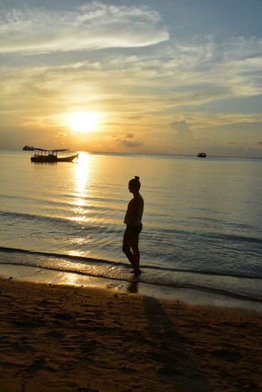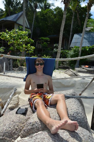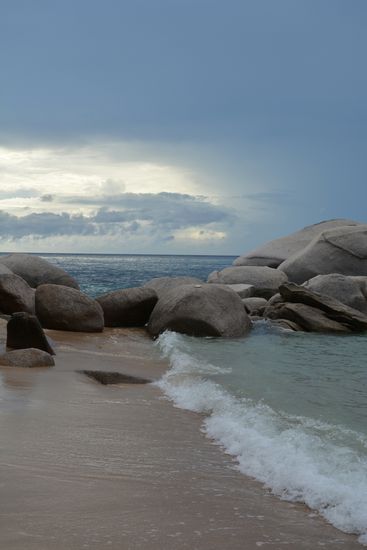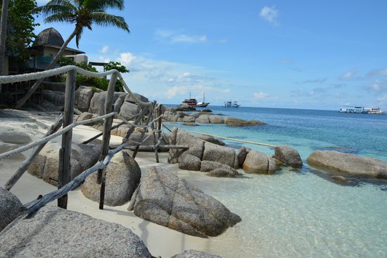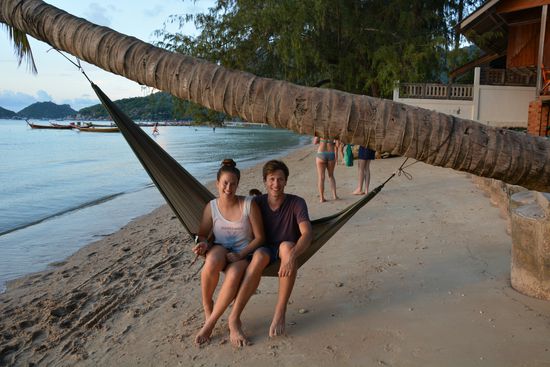 Nachdem wir nun fertig mit unseren Tauchkursen waren, blieben wir noch zwei weitere Tage in Bans Diving Resort. Während den Kursen mussten wir dort nichts für die Übernachtung zahlen, sodass uns nur die letzten zwei Nächte etwas kosteten. In den zwei Tagen besichtigten wir die Insel. Am ersten Tag liehen wir uns zwei Mountainbikes und fuhren erst zu einem Aussichtspunkt und dann zu einem abgelegenen kleinen Strand. Die Straße zum Aussichtspunkt war irre steil und wir waren sehr erstaunt, dass die Mopeds hier hochkamen. Wir mussten an einigen Stellen laufen und kamen total durchgeschwitzt oben an...Der Aussichtspunkt war leider nicht so toll wie erwartet, da es kein wirklicher Aussichtspunkt war, sondern man hinter zwei Funkmasten einen etwas von Bäumen verstellten Blick in eine Bucht hatte. Als Belohnung für den steilen Weg, ging es jetzt bis zur Bucht nur noch bergab. Wir kamen am kleineren der zwei Strände an , der von der Flut fast ganz unter Wasser war und aßen in einem kleinen Restaurant direkt am Wasser zu mittag. Kaum saßen wir da, gab es auch schon einen Tropenregen, den wir, schön im trockenen sitzend, vorbeiziehen ließen. Danach machten wir uns auf zum größeren Strand (Sai Nuan Beach), der auch nur 100m breit, aber dafür sehr schön war. Hier sind wir auch geschnorchelt und haben es sehr genossen, dass kaum andere Leute da waren, obwohl direkt daneben ein kleines Resort mit Bungalows war.