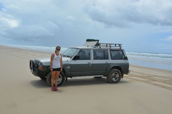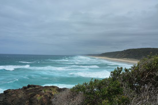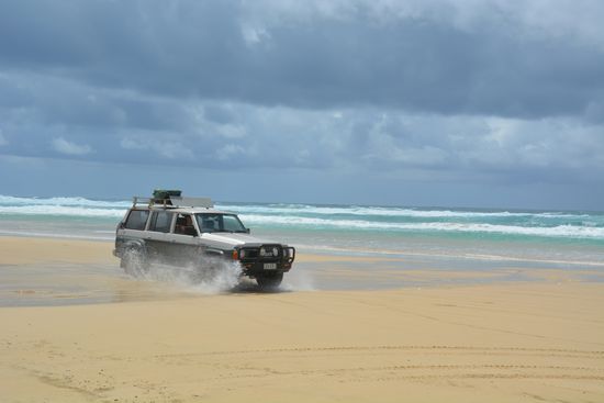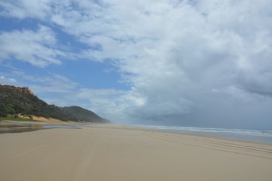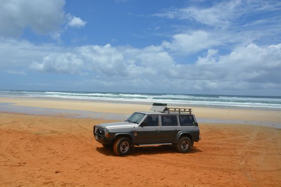 Wir fuhren bei Rainbow Beach auf den Strand und waren total begeistert davon. Der Strand ist ab 2 Stunden vor und bis 2 Stunden nach der Ebbe befahrbar. Dabei gelten die normalen Straßenregeln und eine Geschwindigkeitsbegrenzung von 80 Km/h.