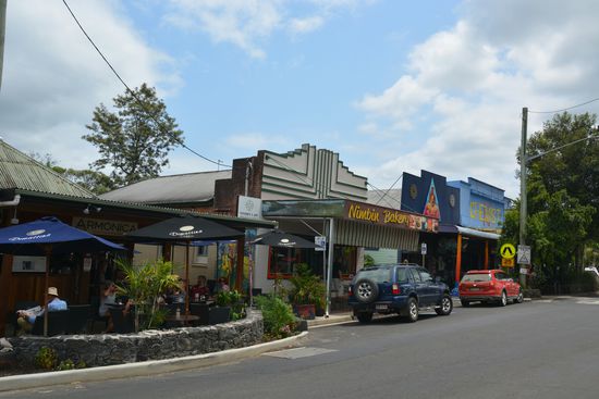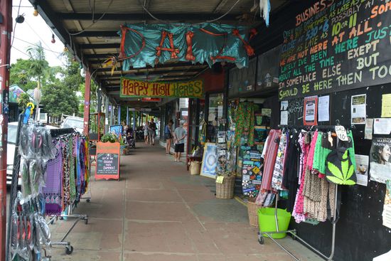 Heute besichtigten wir Nimbin. Wir fuhren durch eine schöne hügelig grüne Landschaft in den kleinen Ort. Nimbin ist ein sehr alternativer Ort, eine kleine Hippie Oase, die auch als Marihuana Hochburg bekannt ist. Vor der Ortseinfahrt am Fluss liegt die Nimbin Candle Factory, welche im alten Gebäude der Butter Factory untergebracht ist. Dort werden in Handarbeit in riesigen Bottichen Kerzen in verschiedenen Farben, Formen und Größen gezogen. Für manche Kerzen benutzen sie alte Getränkedosen als Formen . Der Verkaufsraum und die Werktstatt sind eins und man kann alles anschauen. Die Factory hat auch schon Kerzen für berühmte Filme, wie zum Beispiel Fluch der Karibik, The Great Gatsby und Thor 3 hergestellt. Mir hat es dort sehr gut gefallen und wir haben dann auch eine Kerze gekauft in der zwei Opale versteckt sind . Im Ort ließen wir unser Auto stehen und spazierten zu Fuß durch die Hauptstraße. Der Ort, den man sich anschaut besteht eigentlich nur aus einer Straße, an der alle Läden und Cafés sind. Die Fassaden der Häuser sind alle schön bunt bemalt und es gibt viele kleine Läden die Schmuck, Kleidung, Kräuterprodukte und Tees verkaufen. Außerdem gibt es eine Reihe von Cafés und ein Restaurant. In der Mitte der Straße steht die berühmte Hemp Embassy (Hanf Botschaft), die sich für den medizinischen Einsatz von Marihuana und generell einen liberaleren Umgang mit der Pflanze stark macht. Der Ort war recht belebt, sowohl von Tagesbesuchern als auch von barfußlaufenden Hippies und es hat Spaß gemacht dort gemütlich hindurch zu bummeln. Wir gönnten uns aus einer kleinen Bäckerei zwei Stückchen, bevor wir weiter nach Lismore fuhren. Eigentlich wollten wir gar nicht nach Lismore, sondern direkt weiter nach Byron Bay. Da in der ganzen Gegend dort aber nur völlig überteuerte Campingplätze sind, beschlossen wir, in Lismore zu übernachten und am nächsten Morgen nach Byron Bay zu fahren. In Lismore fuhren wir zuerst zur Universität, da es dort auf dem Campus ein kleines Koala Care Center gibt und im Park auch ein paar freie Koalas leben. Mo war dort schonmal, deswegen wussten wir von den Koalas. Wir schauten fleißig in die Bäume und konnten auch drei Koalas entdecken . Danach fuhren wir zum übernachten auf die Lismore Showgrounds.