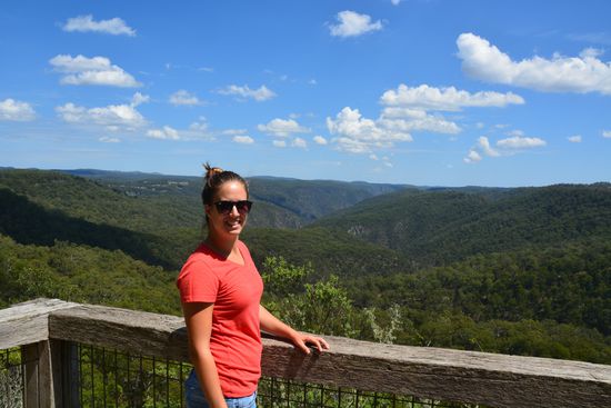 Anschließend fuhren wir zu den Ebor Falls, welche im Guy Fawkes NP liegen. Es sind zwei relativ große Wasserfälle, die kurz hintereinander am selben Fluss liegen. Zuerst waren wir beim Upper Lookout, von welchem wir den oberen Wasserfall sehen konnten und danach ging es weiter zum 700m entfernten Lower Lookout, von welchem man den unteren der beiden Fälle, aber auch den oberen sehen kann.