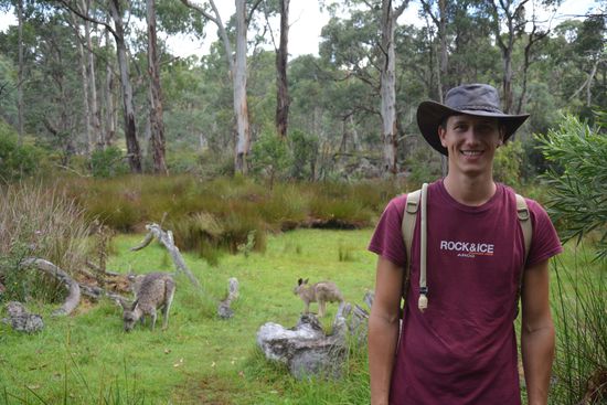 Kurz bevor wir das Auto erreichten wurden wir dann noch von einer Gruppe Kängurus überrascht, die vor uns auf einer kleinen Lichtung graste .