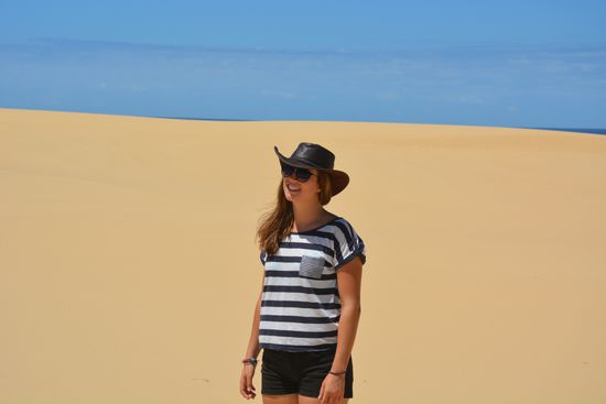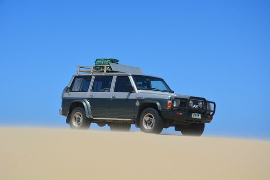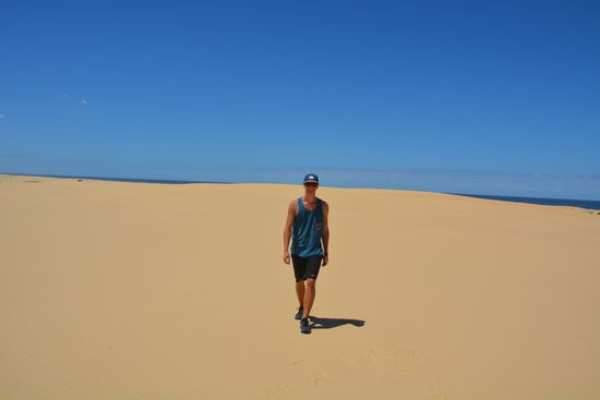 Zum Abschluss machten wir mit Fritz noch einen Ausflug zur Dune Driving Area, wo man auf den großen Dünen, die etwa 200m vom Wasser entfernt sind, fahren darf. Dabei hatten wir sehr viel Spaß und es fühlte sich an als wären wir wieder in der Wüste. Durch die vielen Verwehungen konnte man manchmal die Entfernung zur Düne überhaupt nicht einschätzen, was uns beide an Ski fahren bei schlechter Sicht erinnerte. Auf den Dünen war es sehr windig und man bekam die ganze Zeit Sand an die Beine, der spitz wie Stecknadelspitzen war . Von den Spitzen der Dünen hat man eine perfekte Sicht auf Newcastle. Wir fuhren bis zurück zum Ausgang über die Dünen und zu McDonalds, wo man auf dem Parkplatz die Reifen aufpumpen kann.