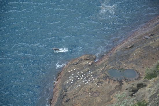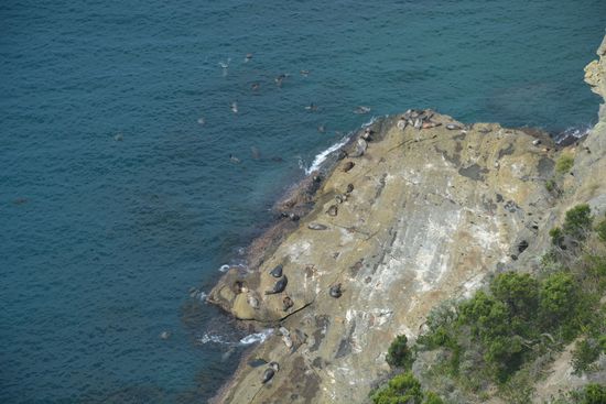 Wir sahen ungefähr 100 Robben, die unten vor der 70m hohen Klippe spielten und sich sonnten. Je nachdem wie der Wind steht, kann man die Robben schon riechen bevor man sie sehen kann, weil sie so stark riechen (der Geruch ähnelt dem von Ostseekrabben ).