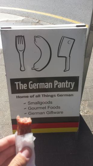 Wie sich herausstellte, ist es etwas zu spät, freitags anzurufen um am Samstag einen Termin zu bekommen . Der früheste freie Termin war am Montag morgen, weshalb wir in unserem Zeitplan etwas aufgehalten wurden. Den Service fanden wir auf Groupon, wo es viele, sehr gute Angebote gibt. Wir hatten also den ganzen Samstag und den ganzen Sonntag, die wir irgendwie rumbringen mussten. Wir fuhren nicht bis ganz nach Adelaide, sondern zu einem kostenlosen und recht schönen Campingplatz mitten in einer Weingegend. Samstags erledigten wir ein paar Einkäufe und verbrachten etwa 2std. in der Bibliothek von Mount Barker, wo wir mal wieder sämtliche Elektrogeräte luden und Bilder sortierten. Nachmittags fuhren wir in das nahegelegene Hahndorf. Das klingt nicht nur deutsch, sondern es ist tatsächlich eine ehemals deutsche Siedlung. Der Ort besteht eigentlich nur aus einer Hauptstraße, an der mehrere alte Steinhäuser stehen in denen "deutsche" Restaurants und Kaffees sind. In den Restaurants kann man natürlich deutsch essen und neben ein paar Sachen die wirklich deutsch sind findet man einige, von denen man noch nie gehört hat. Wie zum Beispiel der deutsche Hot Dog... ein Hotdog Brötchen mit einer Frankfurter Wurst und darauf dann Sauerkraut. Wie jeder weiß essen wir deutschen ja zu allem Sauerkraut .