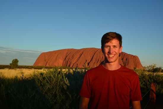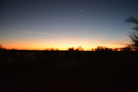 Den restlichen Tag mussten wir am Pool verbringen, da die Hitze sonst nicht auszuhalten war. Für den Sonnenuntergang fuhren wir zur Sunset Viewing Area. Wie vorhin schon beschrieben kamen die Farben viel deutlicher zur Geltung und der Uluru strahlte uns über das dunkle Feld in knalligem orange und rot entgegen. Das einzige was die Stimmung kaputt machte, waren die unzähligen Fliegen, die uns im Gesicht herumflogen.