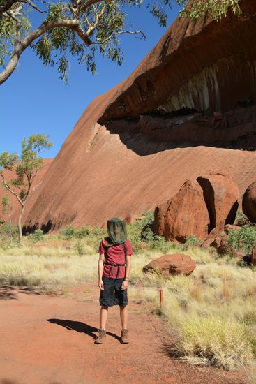 Rückblickend war der Weg nicht nur schöner, sondern auch angenehmer zu laufen, da dauernd ein Wind wehte und es weniger Fliegen gab als beim Uluru.