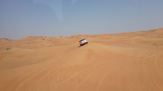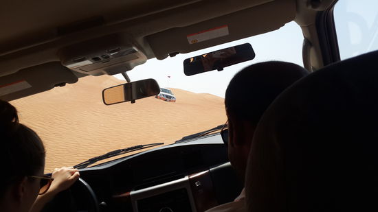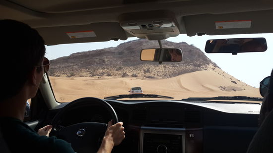 Nachdem wir das beide einmal gemacht haben ging es an den spaßigsten Teil des Tages. Das hoch und runter Fahren auf den Dünen. Dabei ist ein weiterer Lehrer in einem anderen Auto vorgefahren und wir mussten ihm folgen.