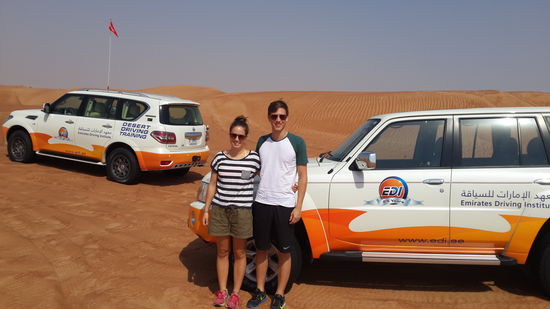 Heute Morgen sind wir also mit dem Taxi zum Emirates Driving Institute gefahren und kamen dort um 8:30 Uhr an. Nach der Anmeldung und dem Bezahlen war ersteinmal eine Theoriestunde dran, in der wir die verschiedenen Arten von Allradantrieben gezeigt bekamen und neben weiteren technischen Einzelheiten auch Techniken beigebracht bekamen, wie man ein festgefahrenes Fahrzeug wieder frei bekommt, ohne dabei aussteigen zu müssen.