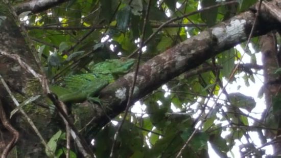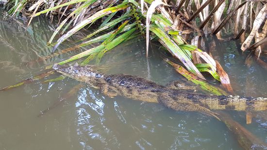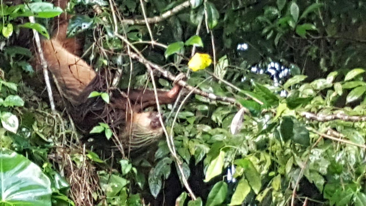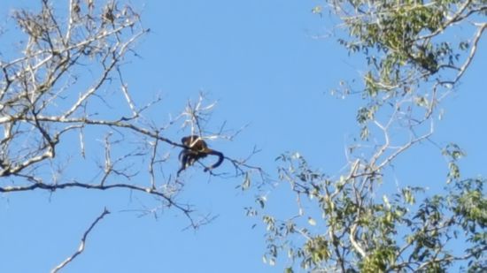 Wir sehen noch eine große Wasserschildkröte und einige Brüllaffen. Letzter sitzen als Fellknäuel weit oben in den Bäumen, da werden die Fotos garnichts.