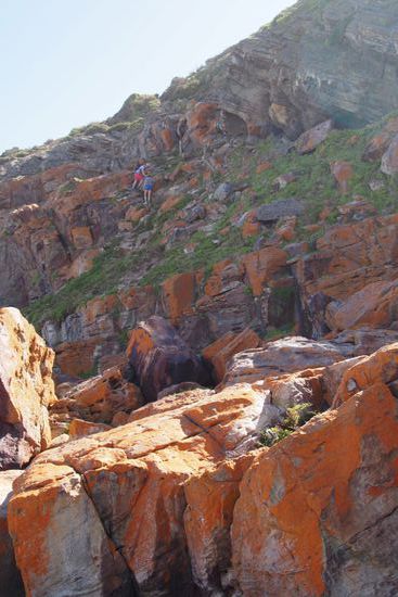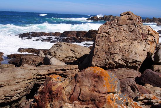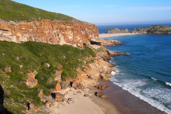 Von unseren Gastgebern in unseren Ausflugzielen bestätigt, waren wir heute bei Plettenberg im Robberg Nature Reserve, einen urwüchsigen, bergigen Halbinsel, die zu Fuß zu erwandern ist. Am Parkplatz, wieder mit Papierschreiberei und endlos scheinender Wartezeit trotz nur weniger Autos, die Fee von 80 Rand gelöhnt und auf den Weg genacht. Atemberaubend schöne Landschaft, bizarre Steilküsten; Blick auf die Robbenkolonien, vorbei ziehende Delphine, nur Wale und Haie haben wir nicht gesichtet.