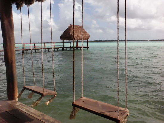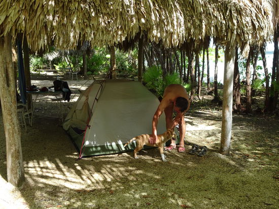 Dann nimmt uns 25km ein Pickup mit, der Mann ein ca. 75jähriger US Amerikaner, seine Frau Anfang 30, eine Einheimische. Die dreijährige Tochter auf der Rückbank staunt mich wortlos an. Wir radeln wieder ein Stück und schon hält das nächste Auto. Das Paar will über die mexikanische Grenze und bietet an, uns mitzunehmen. Angeblich wäre der Grenzübertritt für Radfahrer nicht möglich. Die beiden warten netterweise unsere Formalitäten ab, ohne uns wären sie viel, viel schneller gewesen. Sie setzen uns am Abzweig nach Chetumal ab. Da heißt es für uns nochmal Kräfte mobilisieren und dann fahren wir mit einbrechender Dunkelheit in Bacalar ein und finden auch den Campingplatz recht schnell. Thomas baut das Zelt auf und Jana bekommt am 3. Geldautomaten auch mexikanische Pesos.