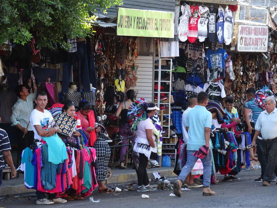 Nach einem gemütlichen Frühstück im Garten (ein Kolibri nascht neben uns an der Papageienblume) schlendern wir zum Markt um für Thomas ein Paar Turnschuhe zu erstehen. Wir besuchten ja wirklich schon viele Märkte, aber so ein Gedränge sahen wir noch nie. Wenig Platz für hunderte Händler, lebendes Geflügel, Frauen auf dem Boden sitzend, nur mit dem wenigen was der Garten hergibt,...
