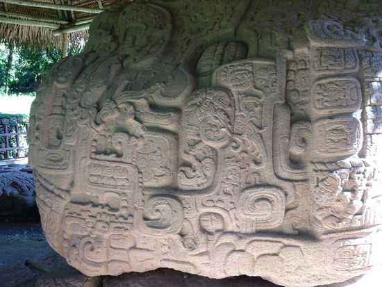 Die weltbekannte Ausgrabungsstätte Tikal liegt nicht an unserem Weg, deshalb planen wir Quirigua zu besuchen. Angeblich genauso schön, nur nicht so bekannt und überlaufen. Als wir 8.30 Uhr am Eingang stehen, laufen wir in der ersten Stunde auch völlig allein durch die Anlage. Die Stelen stammen von 200 - 800 n.Ch. und sind sehr gut erhalten. Wir würden uns hier einen Guide wünschen, aber der sprengt unser Budget. ( Eintrittt 22 €, Führer 34 €)