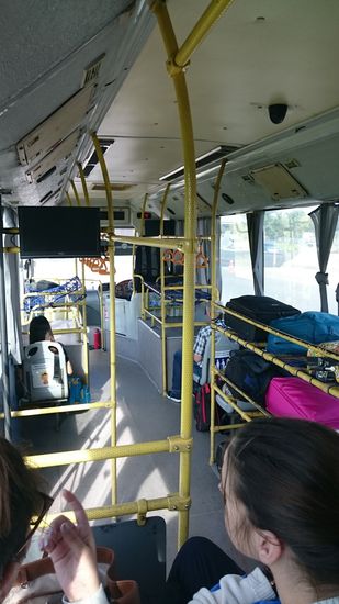 Erst wurde uns mitgeteilt, daß der Flug von 14.50 auf 14.05 vorverlegt wurde und dann hatten wir Verspätung . Mit dem Bus wurden wir zum Flieger gefahren. Da wir das Gepäck als Package (Air Asia ist halt eine Billig-Fluglinie) von zu Hause aus zugebucht hatten, konnten wir auch Snack + Getränk und Sitzplatzauswahl in Anspruch nehmen.