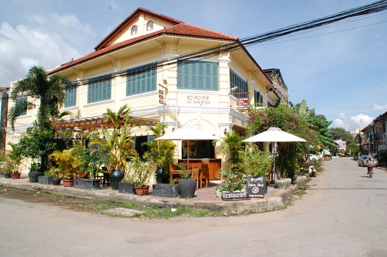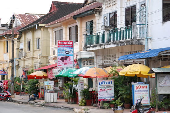 An einem Guesthouse haben wir dann ewig warten müssen, bis die Gäste endlich kamen. Dann wurden wir ca. 30 Minuten quer durch die Stadt kutschiert, bis wir am Sammelpunkt waren. Wir konnten im Bus bleiben, da dieser nach Kampot fuhr. Unterweg hat er mal einen Tankstop eingelegt, in der Zeit konnte man sich kurz die Füsse vertreten. Nach ca. 3 Stunden (etwas mehr) sind wir dann in Kampot angekommen. Wie überall stürzen sich die TukTuk Fahrer direkt auf einen, obwohl man noch gar nicht richtig angekommen ist. Bis zu unserer Unterkunft war es nicht wirklich weit. Wie überall, trotz anderer Angaben, war auch hier unser Zimmer fertig. Wir sind hier in einer alten Villa gelandet. Es gibt wohl auch nur 6 oder 8 Zimmer.