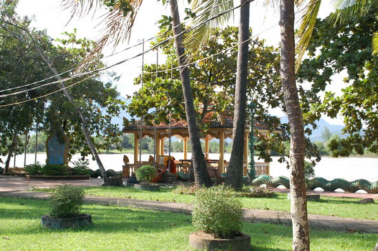 Da wir jetzt bald 4,5 Stunden insgesamt im Bus gesessen haben, wollten wir uns mal bewegen. Um die Kurve rum, sind wir gleich an der Flusspromenade. Als erstes fällt diese schöne Ruhe hier auf. Das tut mal richtig gut.
