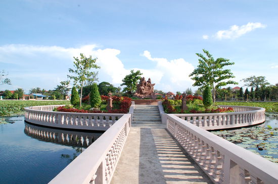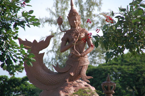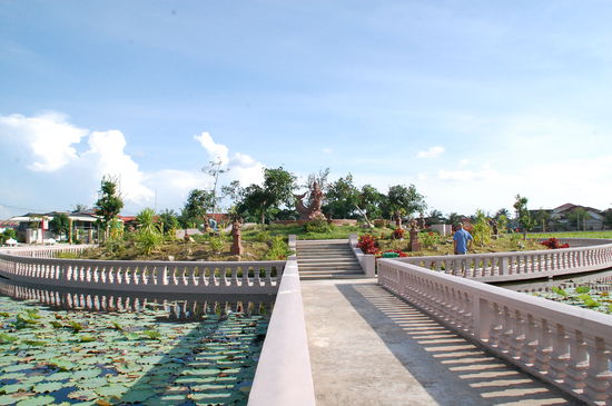 Wir waren dann noch an einem kleinen künstlich angelegten See mit tausenden Lotusblüten und 2 kleinen Terassen mit Figuren drin. Leider haben wir nicht verstanden, wofür das Ganze ist.